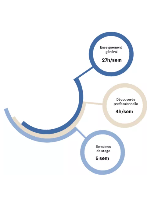 5 semaines de stages + des modules "Découverte des filières professionnelles" du lycée.